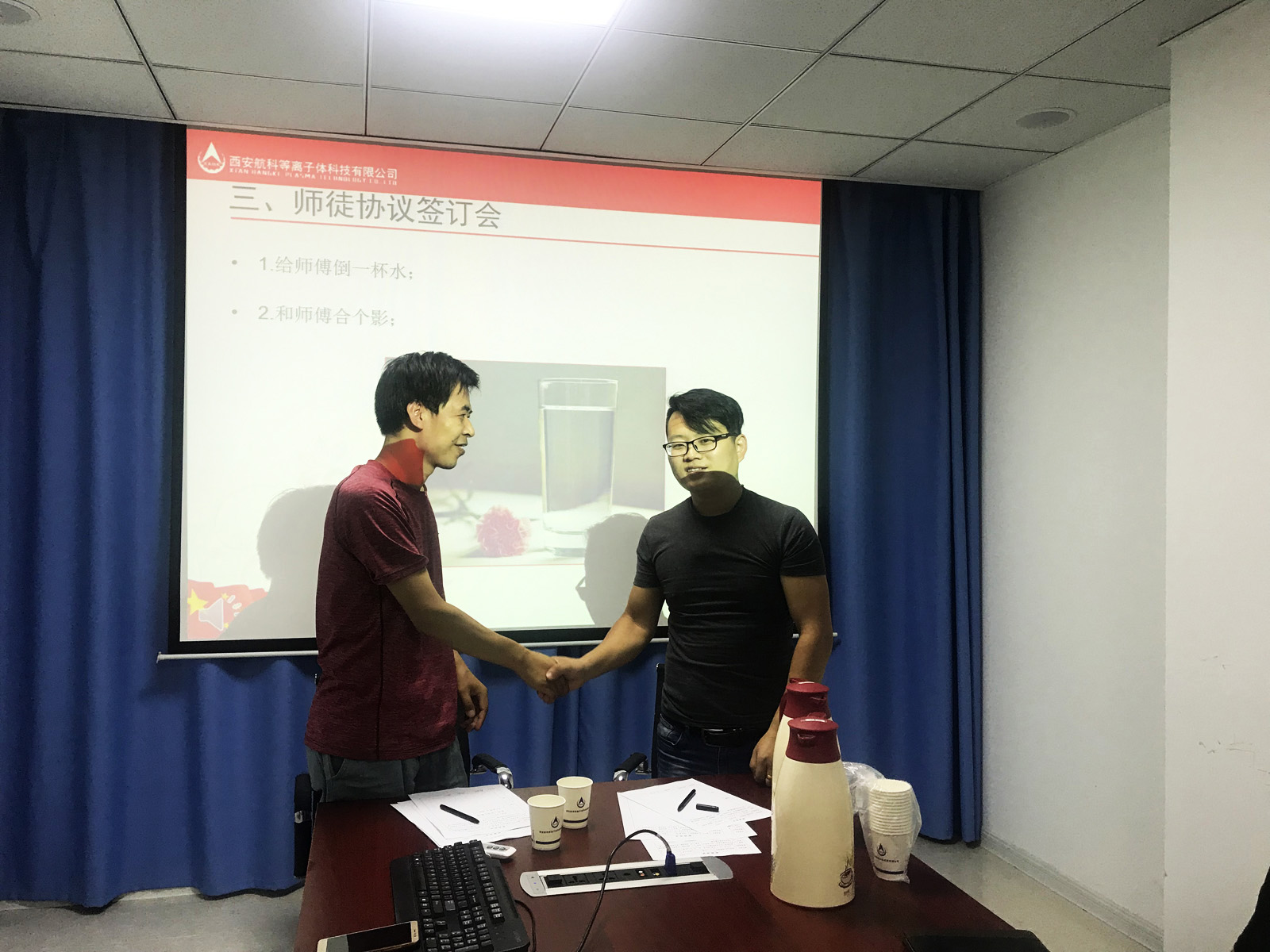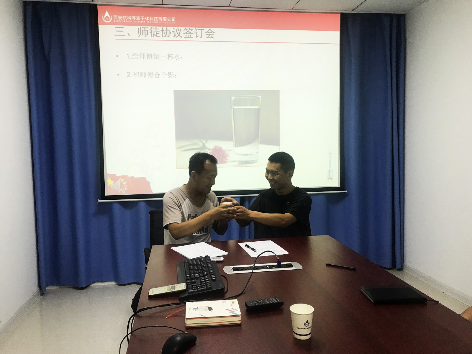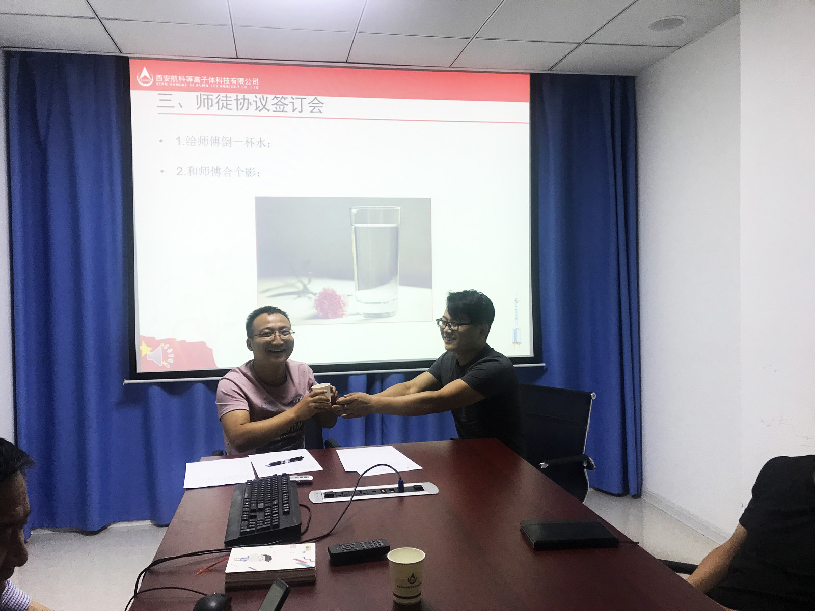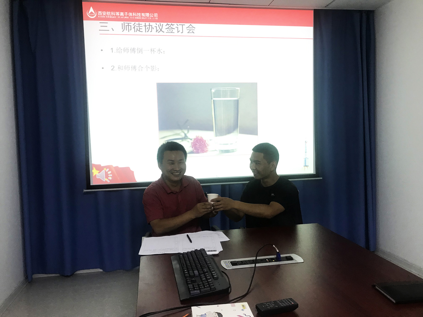 首先由總經(jīng)理助理陳灃宣讀“師徒管理規(guī)定”和“師徒結盟”活動方案;隨后,組織新老員工進行了師徒結盟簽訂儀式:每對師徒簽訂了“師徒協(xié)議”,由徒弟給師傅敬一杯茶,確定雙方師徒關系。在表態(tài)發(fā)言環(huán)節(jié),師傅代表何亮:鄭重承諾將毫無保留將工作中的積累經(jīng)驗傳授給徒弟,攜手共進;徒弟代表袁旭在發(fā)言中講到:嚴格要求自己,主動學習,多問、多聽、多觀察、多討論,快速提升自身技能,為公司快速發(fā)展貢獻力量。