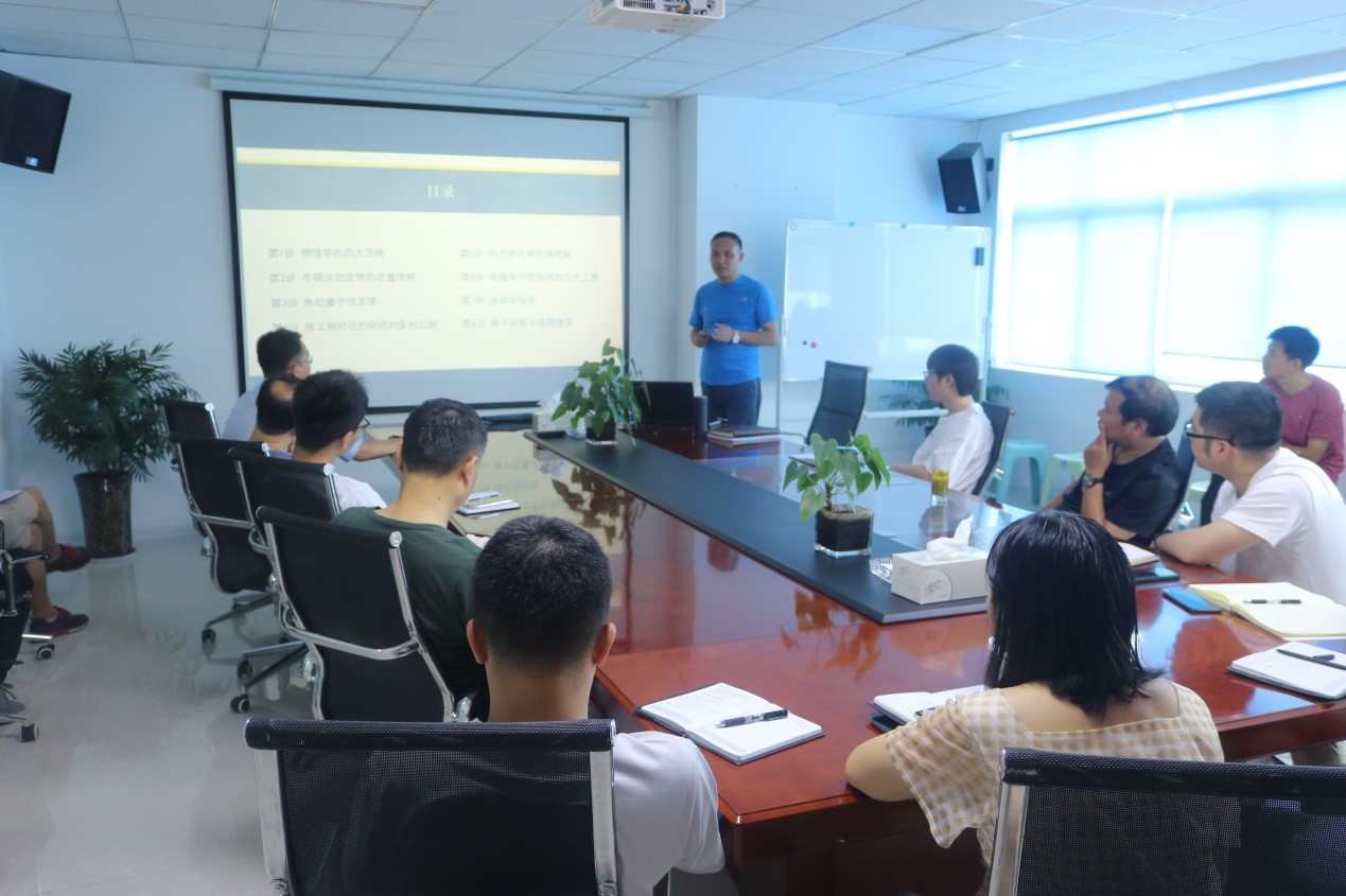 基礎(chǔ)知識(shí)是創(chuàng)新的根基和源泉。在邀請(qǐng)多位科研院所、高校的教授、博導(dǎo)蒞臨講學(xué)后,為進(jìn)一步夯實(shí)研發(fā)團(tuán)隊(duì)基礎(chǔ)能力,8月4日至7日,公司特地邀請(qǐng)了浙江省紹興市鑒湖中學(xué)物理特級(jí)教師兼浙江師范大學(xué)物理學(xué)科教育研究生導(dǎo)師陳敏華博士,依托德國(guó)卡爾斯魯厄大學(xué)物理教材(該教材充分體現(xiàn)了德國(guó)物理教學(xué)的嚴(yán)謹(jǐn)性和系統(tǒng)性,對(duì)物理概念的外延、內(nèi)涵有深刻的闡述,對(duì)物理學(xué)專(zhuān)業(yè)學(xué)習(xí)會(huì)產(chǎn)生不可估量的深遠(yuǎn)影響,下文對(duì)該教材簡(jiǎn)稱(chēng)KPK),利用三天時(shí)間,系統(tǒng)梳理了力、熱、電、磁、波動(dòng)及原子和原子核物理的基礎(chǔ)。