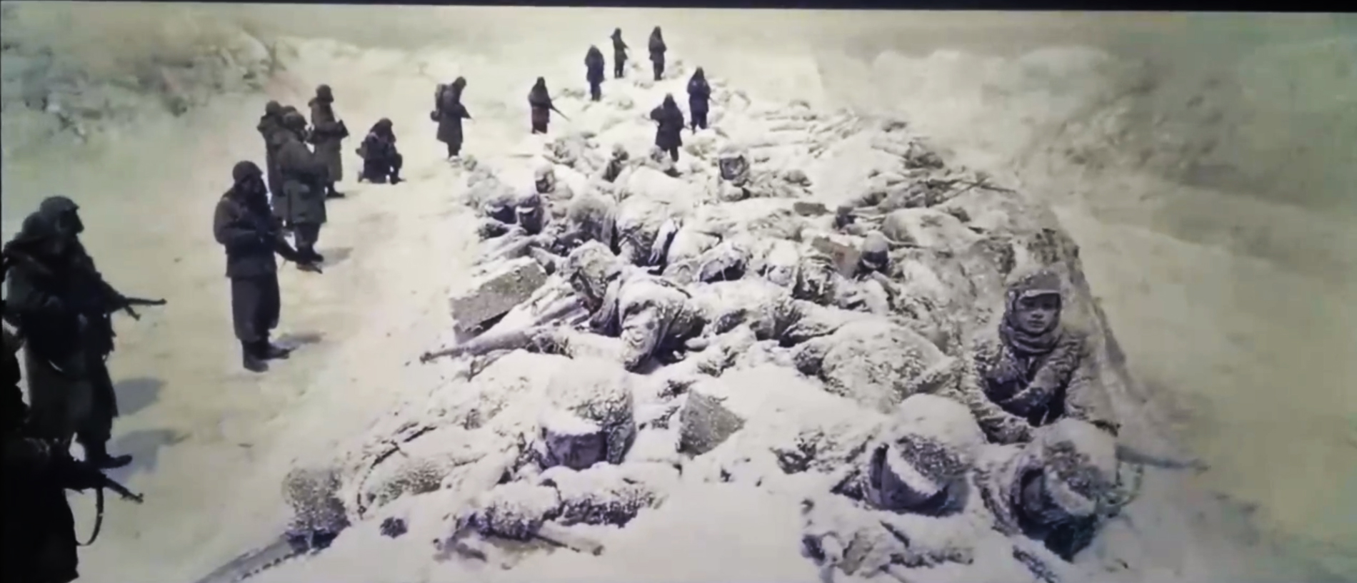 面對武器和其他裝備優(yōu)良的美國軍隊(duì),中國人民志愿軍戰(zhàn)士體現(xiàn)了服從命令視死如歸、凍成冰雕也不退縮的革命精神。面對“冰雕連”的烈士們,美國人由衷的向他們行了個(gè)軍禮。