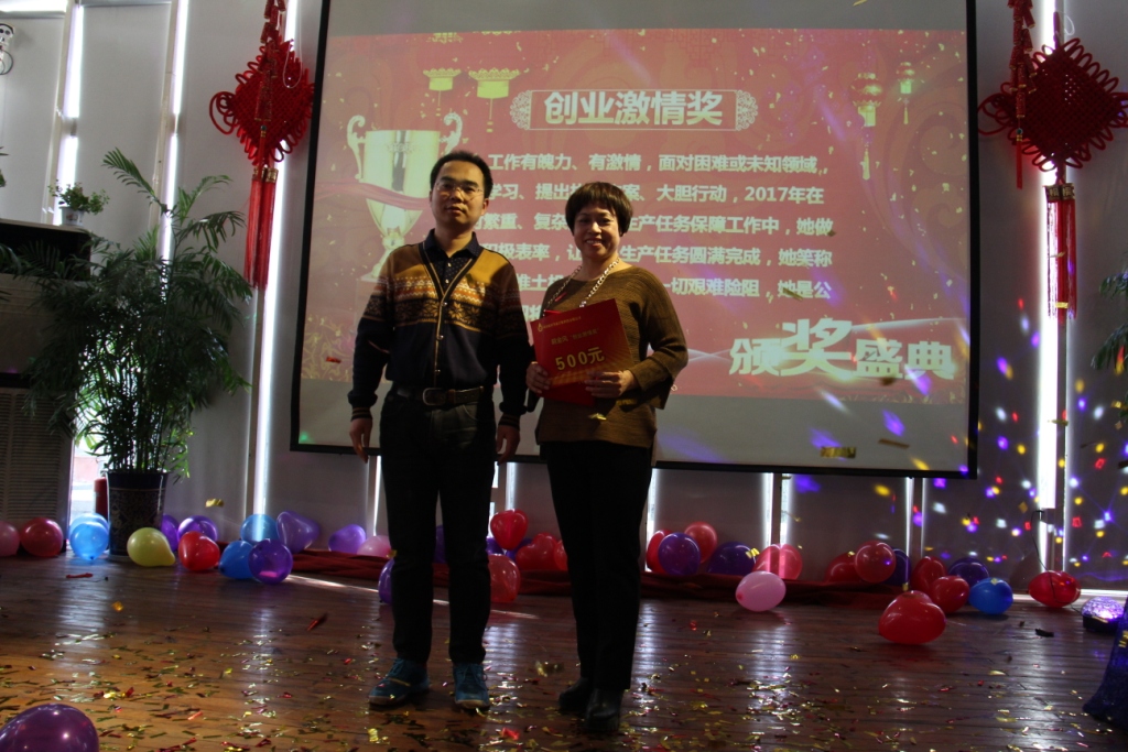 在年會(huì)過程中,穿插進(jìn)行了表彰環(huán)節(jié),頒發(fā)了優(yōu)秀員工、優(yōu)秀集體頒獎(jiǎng)。2017年公司涌現(xiàn)出了一批先進(jìn)工作者和先進(jìn)集體,他們?cè)诟髯詬徫簧献龀隽送怀龅呢暙I(xiàn),為我們樹立了先進(jìn)的標(biāo)桿,是我們學(xué)習(xí)和看齊的榜樣。每個(gè)獎(jiǎng)項(xiàng)的頒布,都配合有明確而簡(jiǎn)潔的頒獎(jiǎng)詞,這是對(duì)優(yōu)秀員工、優(yōu)秀集體的業(yè)績(jī)和事跡的凝練,更是對(duì)獲獎(jiǎng)?wù)咦詈玫陌?jiǎng)。