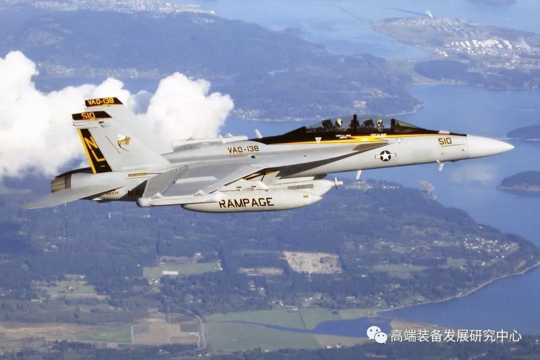 2017年,首部《電子戰(zhàn)戰(zhàn)略》制定完成。這表明,繼網(wǎng)絡(luò)戰(zhàn)后,電子戰(zhàn)很可能成為美軍新的獨立作戰(zhàn)樣式。從破開恩尼格碼的“圖靈炸彈”到席卷波斯灣的“白雪”行動,圍繞電磁頻譜的爭奪愈演愈烈。作為承擔(dān)美軍絕大部分電子戰(zhàn)任務(wù)的軍種,美國海軍艦載電子攻擊機EA-18G“咆哮者”無疑是支撐上述戰(zhàn)略的核心。